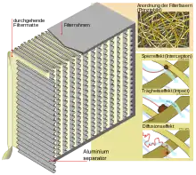Данный фильтр может содержать активированный уголь, а иногда в основном состоит из него. Это требуется для удаления запаха и нейтрализации опасных газов. Также может иметь небольшой мелко ячеистый фильтр для удержания особо мелких частиц. Сейчас существуют фильтры, способные обеспечить эффективность очистки в 99,999995 % (U17).