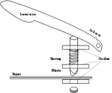 Конструктивно состоит из двух круглых стержневых ножей (режущая кромка обычно неровной формы для плавного среза), опускающихся на бумагу сверху под давлением при нажатии рукой. Под ножами находятся отверстия, ведущие в бумагоприёмник (который накапливает вырезанные кружочки бумаги). Ножи обычно крепятся на ручке, работающей как рычаг (ножи находятся ближе к оси вращения, чем точка приложения усилий к ручке). Снизу ручки находится пружина для возврата устройства в исходное положение после отреза.