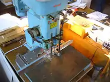 Отверстия в бумаге также можно получить на станках похожих на сверлильный станок. В этих станках для проделывания отверстий в стопке бумаги используются полые сверла, высверленная бумага накапливается внутри сверла. Станок за один раз делает одно, два или три отверстия.