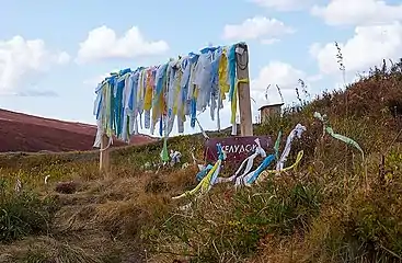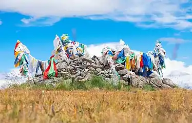Обо в Кош-Агачском районе, ленточки привязаны прямо к камням