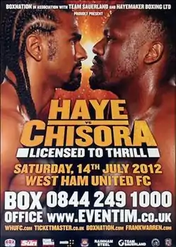 Дэвид Хэй против Дерека Чисоры является одним из самых скандальных боксёрских поединков последних лет. Примечательно что несмотря на высокую популярность поединка, данный бой не был признан официально как большинством организаций мирового бокса, так и Великобритании, и не числится в послужном списке боксёров, boxrec. Но спустя некоторое время поединок включили в официальную статистику боёв, и признали статус санкционированным. В этом бою Дэвид Хэй одержал убедительную победу техническим нокаутом над Дереком Чисорой.