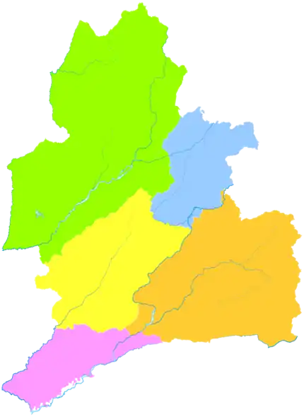 Округ делится на 2 городских уезда и 3 уезда: