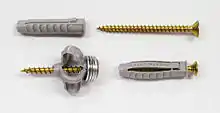 Дюбель (нем. Dübel — шпонка, шкант, вставной шип) — крепёжное изделие, которое совместно с другим крепёжным изделием различными способами закрепляется в несущем основании и удерживает какую-либо конструкцию.