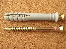 Дюбель-гвоздь — используется для крепления предметов к плотным полнотелым материалам, например кирпичу, бетону, камню.
