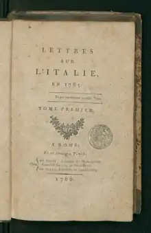 - Большой известностью пользовались в своё время «Lettres sur l’Italie» (1788; русский перевод И. И. Мартынова, 1-ое изд. 1800, 3-е изд. 1817, СПб.).[2]
