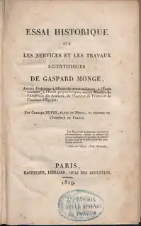 Essai historique sur les services et les travaux scientifiques de Gaspard Monge, 1819]