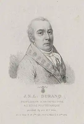 Жан-Николя-Луи Дюран (фр. Jean-Nicolas-Louis Durand, 18 сентября 1760, Париж — 31 декабря 1834, Тье) — архитектор французского неоклассицизма, ученик и последователь мегаломана Э.-Л. Булле. Теоретик архитектуры, педагог. Среди его учеников был Лео фон Кленце[5].