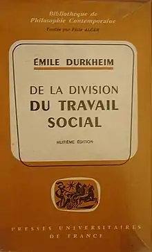 Социальная интеграция в условиях модерна, лишённого традиционных и религиозных связей, представляли главный исследовательский интерес Дюркгейма. Первый крупный труд социолога, «О разделении общественного труда», увидел свет в 1893 году, а через два года он опубликовал свои «Правила социологического метода». Тогда же он стал первым профессором социологии первого во Франции социологического факультета[8]. В 1897 году он представил монографию «Самоубийство», где провёл сравнительный анализ статистики самоубийств в католических и протестантских обществах. Данная работа, положившая начало современным социологическим исследованиям, позволила окончательно отделить социологию от психологии и социальной философии. В 1898 году Дюркгейм учредил журнал L’Année Sociologique («Социологический ежегодник»). Наконец, в книге 1912 года «Элементарные формы религиозной жизни» Дюркгейм представил свою теорию религии, основанную на сопоставлении общественной и культурной жизни аборигенов и современников.