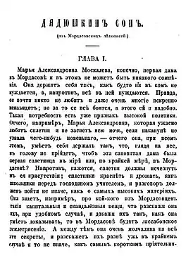 В «Дядюшкином сне» отразились впечатления, полученные Достоевским во время пребывания в Сибири; Мордасов в его повести — это «царство сплетен, слухов, интриг, дамских войн за первенство в обществе»[18]; это город, в котором большим, долго обсуждаемым событием становится любой эксцентричный поступок[19].