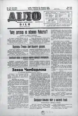 «Дело» — ведущее издание Галичины: её первый, самый старый и на протяжении многих лет единственный ежедневник (первый номер вышел 14 января 1880 года); официальный орган Украинского национально-демократического объединения (УНДО). В начале 1920-х годов из-за цензурных преследований издание часто меняло название: «Общественное мнение», «Украинская мысль», «Украинский вестник», «Общественный вестник», «Свобода».