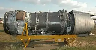 Двигатель — двухвальный, с 3-ступенчатым компрессором и 4-ступенчатой турбиной низкого давления, 11-ступенчатым компрессором и 2-ступенчатой турбиной высокого давления. За 5-й и 6-й ступенями КВД установлены антипомпажные клапаны перепуска, открываемые при помощи 6 топливных гидроцилиндров при запуске двигателя и закрываемые пружинами при оборотах КВД выше 79%.