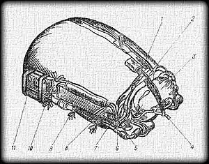 14. Контровочный шнур служит для контровки колец перьев стабилизатора с кольцами камеры стабилизирующей системы. При прыжках с самолета Ан-2 применяются два контровочных шнура длиной по 300 мм, а при прыжках с более скоростных самолетов применяется один контровочный шнур длиной 300 мм. Материалом для этой детали служит хлопчатобумажный шнур ШХБ-20.