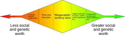«Когда евгеника говорит, что „дегенераты должны быть устранены“, она имеет в виду не существующих дегенератов, но их потенциальное потомство. Если бы евгеника взяла верх, то таких потенциальных детей никогда бы не было. Но после достижения этой наивысшей цели не было бы никаких причин для хоть сколько-нибудь недружественного отношения к дефективным личностям. В самом деле, вдохновленное принципами евгеники общество относилось бы к дегенератам и низшим гораздо лучше, чем к ним относятся сейчас, поскольку такое общество не боялось бы того, что расширение благотворительности приведет к увеличению числа низших. Также оно было бы более склонно к доброму отношению, поскольку понимало бы, что дефекты вызываются наследственностью, и что плохая идиоплазма не может быть ни наказана, ни изменена»[21].