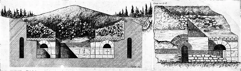 Постепенно, ввиду сложностей ведения раскопок в центре агломерации, опасности оползней, сопротивления местных жителей, раскопки были свёрнуты. После отбытия французских войск летом 1923 года они прекратились окончательно. На вход в подземелье была установлена железная дверь, которая к 1940 году была засыпана до уровня свода[60].