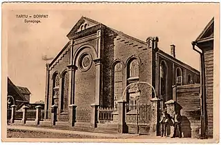 История евреев Эстонии[1] прослеживается начиная с XIV века. Сохранились рукописи, подтверждающие эту дату. Однако постоянные еврейские поселения появились в Эстонии значительно позже — в XIX веке. В 1865 году законом русского императора Александра II евреям было предоставлено официальное право на въезд в регион. Это позволило так называемым еврейским «николаевским солдатам» (часто бывшим кантонистам) и их потомкам, купцам первой гильдии, ремесленникам и евреям с высшим образованием селиться как в Эстонии, так и в других частях Российской империи (за пределами территории, определяющей принятую в те годы «черты оседлости»). Представители этих групп и стали основателями первых еврейских общин в Эстонии. Ревельская община, крупнейшая в Эстонии, была основана в 1830 году. В 1866 году в Юрьеве поселились первые пятьдесят семей, на собрании было объявлено о создании новой общины. Были построены синагоги, самые большие — в Ревеле в 1883 году и в Юрьеве в 1901 году. Обе они впоследствии были разрушены во время Второй мировой войны.