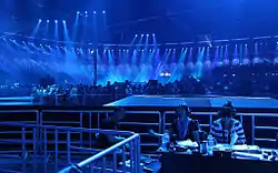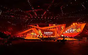 В отличие от многих предыдущих конкурсов, в этом году так называемый «грин-рум», где окончившие выступления участники ожидают результатов голосования, был расположен не за кулисами, а прямо в зрительном зале[36].