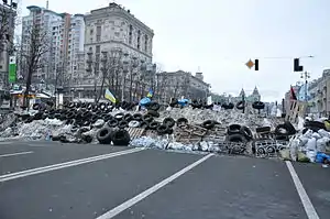 20 января на фоне продолжающихся стычек с милицией активисты занялись возведением баррикады на улице Грушевского[209].