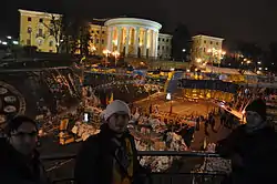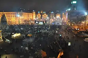 Евромайда́н (укр. Євромайдан) — массовая многомесячная акция протеста в центре Киева, начавшаяся 21 ноября 2013 года в ответ на приостановку украинским правительством подготовки к подписанию соглашения об ассоциации между Украиной и Евросоюзом и поддержанная выступлениями населения в других регионах Украины[114].