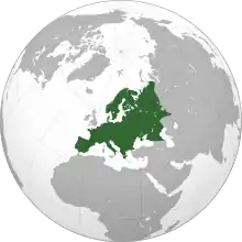 Евро́па — часть света в Северном полушарии Земли, омываемая Атлантическим океаном на западе, Северным Ледовитым океаном на севере и имеющая площадь около 10,3 млн км². Вместе с Азией, Европа образует обширный материк Евразия, занимая примерно 17% её общей площади, и является одной из самых маленьких по величине частей света в мире, немного больше Океании.
