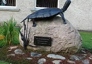 В Даугавпилсе (Латвия) болотной черепахе поставлен памятник. В Литве, где проводится программа по увеличению числа болотных черепах и в заповеднике по охране черепахи популяция увеличена до 500 особей, в Сейрияй рядом с местом проживания данного вида, болотная черепаха объявлена символом города (отображение на гербе, памятник).