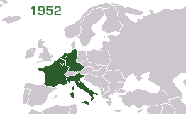 Декларация Шумана (9 мая 1950 года) была исполнена подписанием Парижского договора и образованием Европейского объединения угля и стали (ЕОУС). В состав ЕОУС вошли Бельгия, Италия, Люксембург, Нидерланды, Германия и Франция («европейская шестёрка», которая впоследствии стала движущей силой европейской интеграции)[5]. В том же году при посредничестве США был учреждён Европейский платёжный союз.
