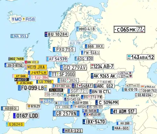 Европейские регистрационные знаки транспортных средств (англ. European license plates) представляют собой металлические или пластиковые таблички, прикрепляемые к автомобилям или прицепам в целях государственной идентификации.