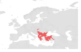 Вид распространён на Балканском полуострове, островах Эгейского моря, островах Кипр и Родос, в Малой Азии, Сирии, Израиле, Иордании, Ираке и Синае, центральной части Армении.