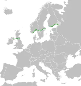 - Ранее маршрут можно было преодолеть от его начала в Северной Ирландии до конца в Санкт-Петербурге без использования альтернативных путей. Однако в октябре 2006 г. судоходный оператор DFDS закрыла несколько своих паромных линий и в частности маршрут Ньюкасл—Кристиансанн[3] (В 2008 г., из-за экономической несостоятельности, была закрыта линия и в Берген)[4]. Таким образом морское сообщение между Англией и Норвегией полностью прекращено.