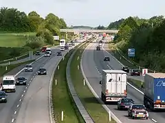 Маршрут Копенгаген — Оденсе очень загружен транспортом, а самый тяжелый участок, пожалуй, — Копенгаген — Кёге. Эта дорога имеет еще два Е-номера (E47 и E55). На пересечении с автомагистралью № 21, в Исхёй часто возникает пробка.