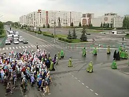 Е22 в Кстово, во время крестного хода