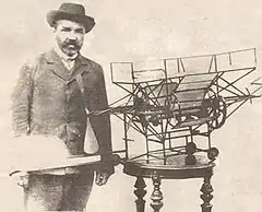 ![]() Евстафьев с моделью своего «геликоптера» | |