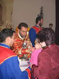Евхари́стия (греч. εὐ-χᾰριστία — «благодарение, благодарность, признательность» от εὖ «добро, благо» + χάρις «почитание, честь, уважение»), Свято́е Прича́стие, Ве́черя Госпо́дня — в исторических церквях (Православной, Католической, Древневосточных) толкуется как таинство[1][2], священнодействие[3]: заключается в освящении хлеба и вина особым образом и последующем их употреблении. Евхаристия даёт возможность христианину «соединиться с Богом во Христе»[4]. Регулярное участие в Евхаристии необходимо человеку «для спасения и вечной жизни»[5]. Согласно апостолу Павлу, при этом христиане «приобщаются Тела и Крови Иисуса Христа» (1Кор. 10:16, 1Кор. 11:23–25). В позднепротестантских течениях она, как правило, толкуется как символическое действие[6], выражающее единство верующего со Христом, но не осуществляющее его непосредственно.