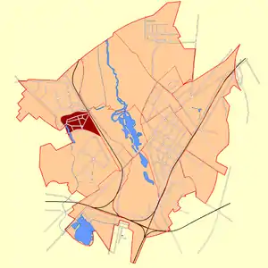Расположен в западной части города. От микрорайона Мариенбург его отделяет река Колпанская, от Красноармейского — Балтийская линия железной дороги. С юга к Егерской слободе примыкает микрорайон Аэродром.