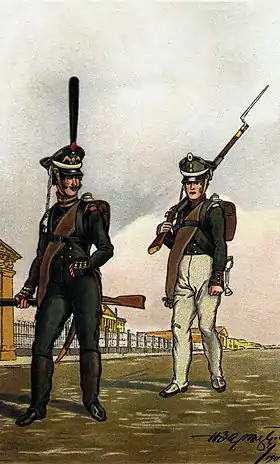 К 1825 году число егерских полков возросло до 60. В гвардии, помимо лейб-гвардии Егерского полка, к егерям относились Финляндский и Волынский полки.
