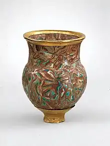Египетский фаянс — изделия из глазурованной кварцевой фритты или толчёного кварца, покрытой стекловидной щелочной глазурью. Египетское слово для фаянса было «tjehenet», что означает «мерцание» или «сияние», и считалось, что фаянс отражал свет бессмертия[1]. Процесс изготовления фаянса впервые был разработан в Месопотамии, но высшего уровня достиг именно в Египте. Некоторые из величайших фаянсовых мастеров древности были финикийцами из Тира и Сидона. Они были очень искусны в изготовлении стекла, и считается, что именно они изобрели первый фаянс. Египтяне взяли финикийскую технику и улучшили её, создав произведения искусства, которые и в наши дни интригуют и очаровывают[2]. Термин «глазурованная керамика», часто применяемый при описании египетского фаянса, совершенно непригоден и только вводит в заблуждение, так как керамика изготавливается из глины, формуется в мокром состоянии и приобретает твёрдость в результате обжига[3].