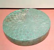 Он был обнаружен лишь в одном из нескольких сотен образцов XVIII династии, а именно на обломке синего изразца из Дейр-эль-Бахри, и на нескольких недатированных образцах, возможно, той же династии. Что же касается способа нанесения этого «особого» слоя, состоящего из чрезвычайно мелко истолченного порошка кварца, то опыты показали, что крепко пристающий белый слой любой толщины может быть образован из смеси тончайшего кварцевого порошка с раствором природной кристаллической соды при последующих сушке и обжиге. Ввиду пористости вещества основы эта смесь не должна была быть слишком вязкой (иначе вследствие поглощения воды кварцем она настолько загустевает, что не накладывается ровным слоем), и, если ею аккуратно облить изделие, она образует ровный слой с гладкой поверхностью и крепко держится после сушки и обжига[3].
