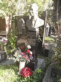 Умер от инфаркта и похоронен в Москве на Новодевичьем кладбище (7 уч. 16 ряд), рядом с отцом.