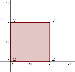 Если задана прямоугольная система координат, то этот термин часто используют в более узком смысле: единичный квадрат — это множество точек, обе координаты которых (x и y) лежат между 0 и 1: