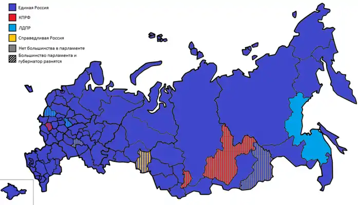 ![]() Карта региональных выборов в 2019 году Губернаторские Парламентские Губернаторские и парламентские |