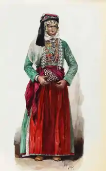 Мужчины отпускали бороду и длинные волосы, которые заплетали в косу. Женская одежда — рубаха (крас), белые шальвары (хэвалкрас), поясная одежда из 2 фартуков (дейра), передник (шалэк) безрукавка (элак), зимой — бархатная куртка (колк), шерстяной пояс (бане пште), конусообразный головной убор, обшитый монетами (кофи).