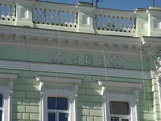 Монограмма «РСТ» на фасаде дома по адресу пл. Екатерининская д. 6.[4].