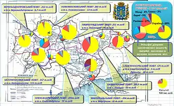 | Мариупольский | 46,1 % | 14,0 % | 4,1 % | 7,5 % | 19,0 % | … | … | … | 6,1 % | 2,1 % |