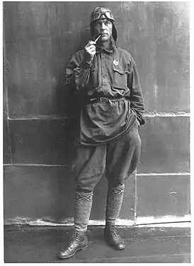 Участник Первой мировой войны. 1915 окончил Московскую лётную школу. Сбил один самолёт противника, за что был награждён Георгиевским крестом.