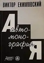 Помимо более сотни музыковедческих работ и монографии о Мессиане, Виктору Екимовскому принадлежит авторство единственного в своём роде труда о самом себе, книги под оригинальным и говорящим названием «Авто-Моно-Графия»,[6] свободно сочетающей в себе одновременно признаки монографии, автобиографии, критического и музыковедческого исследования. Сам по себе жанр композиторских (равно как и всяких прочих) мемуаров отнюдь не уникален. Идея «Автомонографии» была подсказана Виктору Екимовскому, по его собственному признанию, прежде всего, двумя предшественниками: «Мемуарами» Берлиоза и «Автобиографией» Прокофьева.[4]:334 Кроме того, автобиографические труды писали многие композиторы. Среди них: Глинка (Записки Михаила Ивановича Глинки, 1854), Вагнер (Mein Leben, 1870), Гуно (Autobiography, 1875), Массне (Mes souvenirs, 1912), Гречанинов (Моя музыкальная жизнь, 1934), Стравинский (Хроника моей жизни, 1935), Мийо (Notes sans muique, 1949), Онеггер (Je suis compositeur, 1951), Айвз (Memos, 1972), Волконский (Автобиография, 1973), Смирнов (Наброски к автобиографии, 1996) и так далее…[4]:356 Однако в «Автомонографии» Виктора Екимовского есть нечто уникальное, отличающее его от прочих исторических примеров. И, как всегда в его творчестве — это главная идея, от которой он оттолкнулся, или, говоря проще, название: уникальное и формообразующее для всей работы.[11] Снова, как в прочих замыслах Екимовского, «в начале было слово, и это слово было» — Автомонография. Роль идеи во всех работах Екимовского едва ли не каждый раз подчёркивает Николай Корндорф.