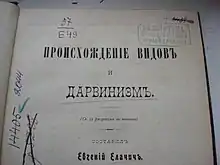 - «Происхождение видов и дарвинизм» (СПб., Типо-литография Шредера, 1904)