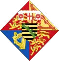 Дамский (ромбовидный) щит, увенчанный короной, соответствующей достоинству детей монарха, обременён серебряным титлом с тремя зубцами. Щит четверочастный: в первой и четвёртой частях — в червлёном поле три золотых вооружённых лазурью леопарда [идущих льва настороже], один над другим [символ Англии]; во второй части — в золотом поле червлёный, вооружённый лазурью лев, окружённый двойной процветшей и противопроцветшей внутренней каймой [символ Шотландии]; в третьей части — в лазоревом поле золотая с серебряными струнами арфа [символ Ирландии])[88].