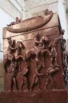 В Риме Елена, согласно историческим данным, была похоронена в мавзолее на Лабиканской дороге за пределами Аврелиановых стен[51]. Гробница примыкала к церкви святых Маркеллина и Петра (оба здания были построены в 320-х годах императором Константином). Согласно Liber Pontificalis, эта гробница изначально строилась Константином для собственного погребения[52]. Ради погребения своей матери Константин предоставил не только свою гробницу, но и изготовленный для него порфировый саркофаг, который сейчас хранится в музеях Ватикана[19].