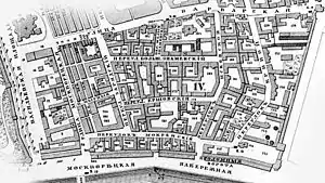 Переулки Зарядья (фрагмент плана Городской части из Атласа Москвы А. Хотева 1853 года)