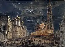 Венчание на царство совершилось в воскресенье 15 сентября 1801 года в Успенском соборе Московского Кремля. Супруги были коронованы, как и четыре года назад Павел I, митрополитом Платоном; было использовано то же чинопоследование коронования, что и при Павле, однако императрица Елизавета Алексеевна «при короновании своём не становилась пред своим супругом на колени, а стоя приняла на свою голову корону»[4]. Впервые праздник для народа устроили за городом — на Сокольническом поле. По случаю коронации великолепные балы были даны в Московском дворянском собрании и в Слободском дворце, куда на маскарад собралось более пятнадцати тысяч человек. Однако, по общему признанию, самым роскошным стало празднество у графа Шереметева на его даче в Останкине, куда пригласили лишь самых знатных особ по билетам[5]. Манифест о короновании даровал народу ряд милостей, в том числе широкую амнистию и щедрую благотворительность.
