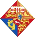 Дамский (ромбический) щит, увенчанный короной, соответствующей достоинству детей монарха, обременён серебряным титлом с тремя зубцами. Щит рассечён и пересечён: в 1-й и 4-й частях в червлёном поле три золотых вооружённых лазурью леопарда [идущих льва настороже], один над другим [Англия]; во 2-й части в золотом поле червлёный, вооружённый лазурью восстающий лев, окружённый двойной процветшей и противопроцветшей внутренней каймой [Шотландия]; в 3-й части в лазоревом поле золотая с серебряными струнами арфа [Ирландия][21]. Поверх щита расположен трёхчастный щиток с гербом курфюрстов Ганновера: в 1-й части два золотых вооружённых лазурью леопарда [идущих льва настороже], один над другим [Брауншвейг]; во 2-й части в золотом поле, засеянном червлёными сердцами, лазоревый, вооружённый червленью лев [Люнебург]; в 3-й части в червлёном поле серебряный бегущий конь [Вестфалия][22].